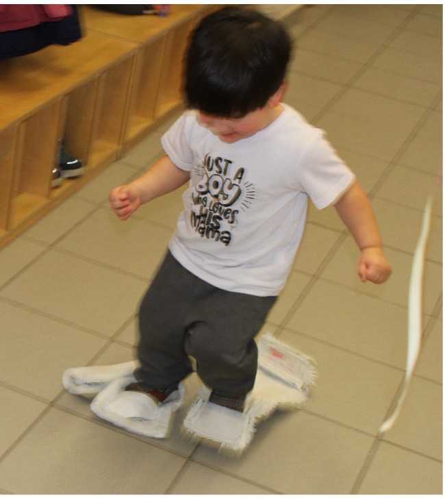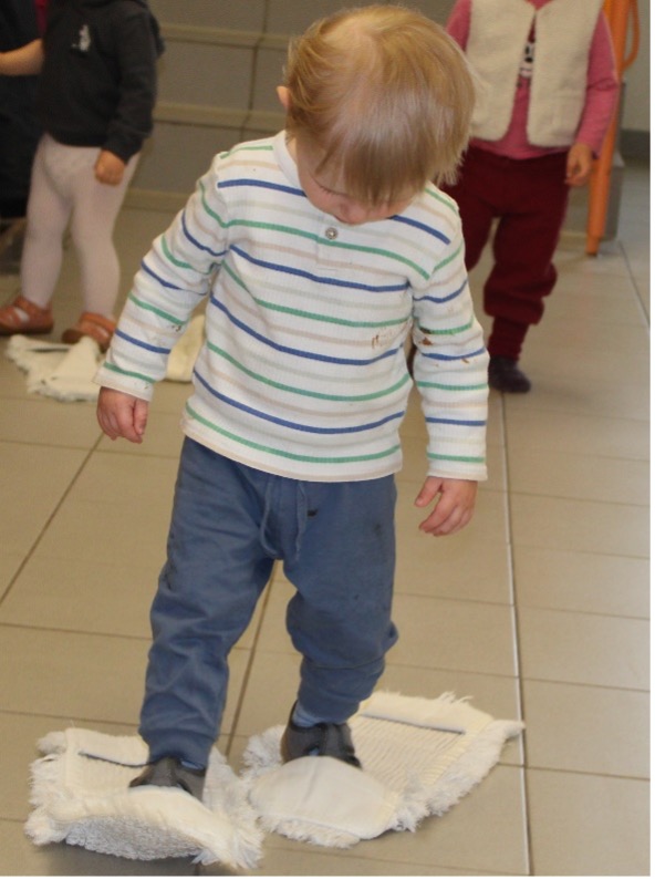 Die erste Station hieß: Skifahren! Natürlich waren es keine echten Skier, sondern rutschige Wischlappen, auf die sich die Kinder stellten. „Achtung… fertig… los!“ rief die Erzieherin – und schon rutschten, stapften und kicherten alle quer durch den Flur. Manche wackelten wie Pinguine, andere sausten los wie echte Profis. Wer es bis zu Ziellinie schaffte, bekam einen riesigen Applaus!
