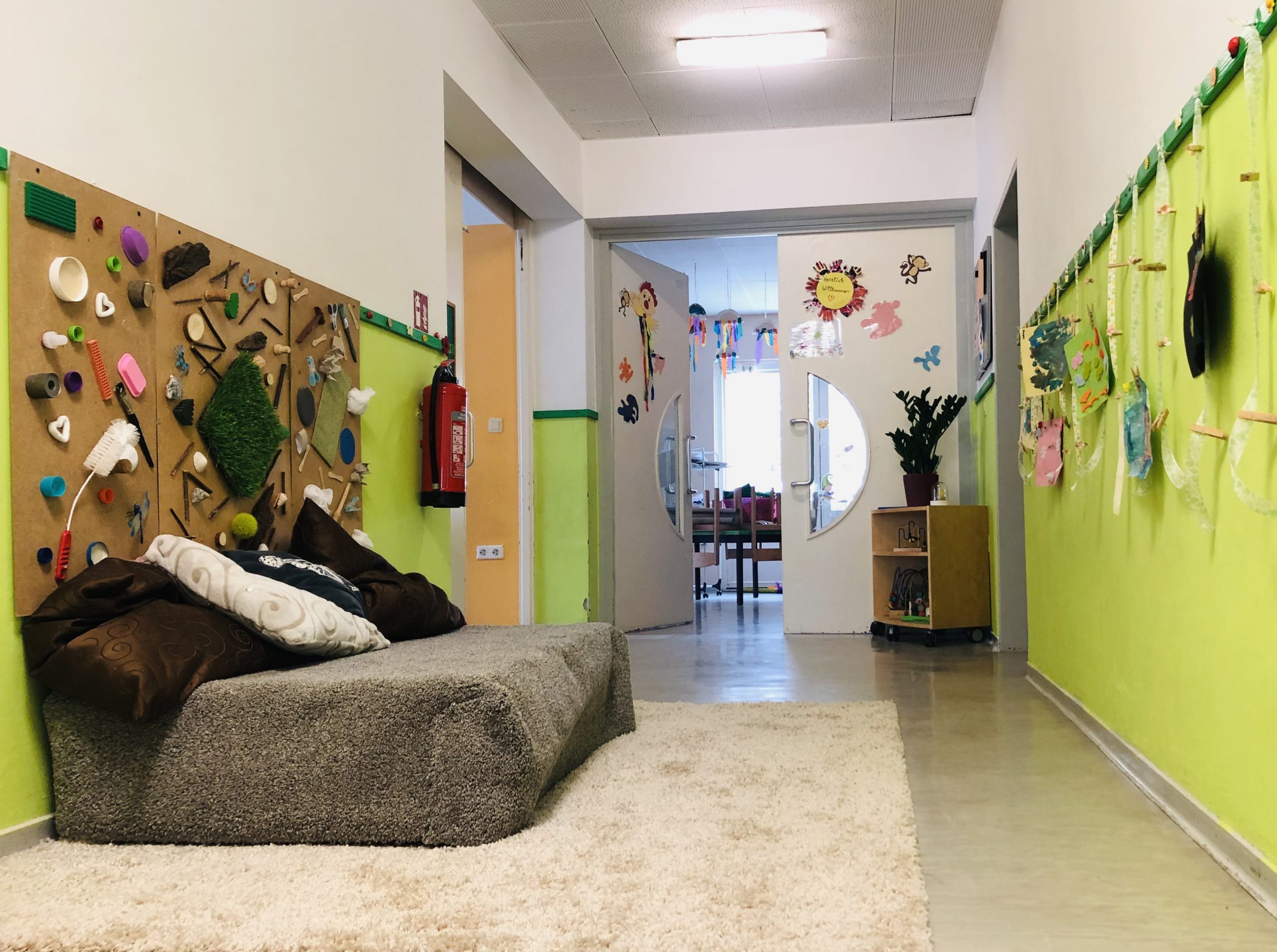 Unsere Räume sind Räume von und für Kinder. Alle Bereiche verfügen über Funktionsräume, in denen sich die Kinder frei und nach ihren Interessen und Bedürfnissen partizipativ entscheiden können, wie sie ihren Alltag gestalten möchten. Die Räume regen zum Forschen, Experimentieren, Spielen, Kreativsein und Entspannen an. Bei der Raumgestaltung ist das aktive Mitwirken der Kinder von großer Bedeutung und wird vom pädagogischen Fachpersonal unterstützt.