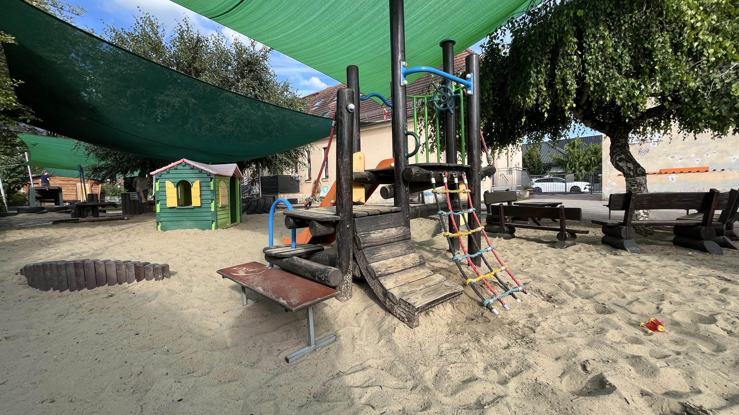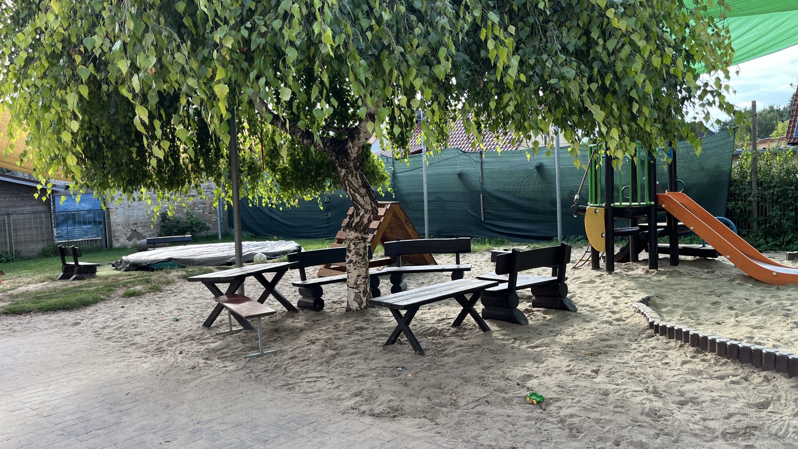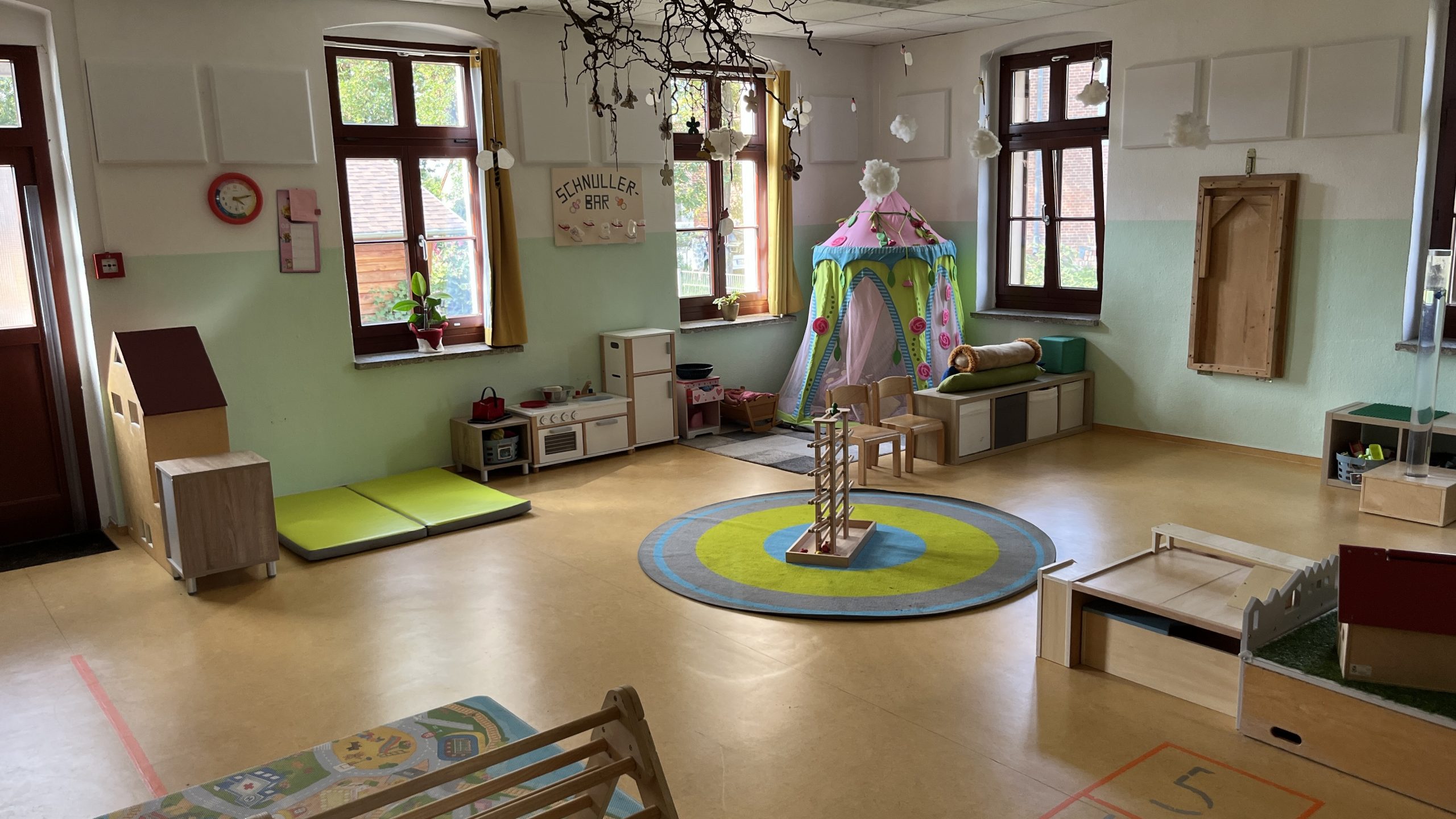 Unsere Einrichtung strahlt den Charme eines historischen Gebäudes aus. Das Dachgeschoss verfügt über Räumlichkeiten mit vielen Nischen und wirkt durch das Dachgebälk gemütlich. 2020 wurde der Krippenbereich saniert und die Bäder modernisiert. Unser Außenbereich bietet mit der Holzwerkstatt und den Spielgeräten, der Matschstrecke viele attraktive Bewegungs-und Spielmöglichkeiten.