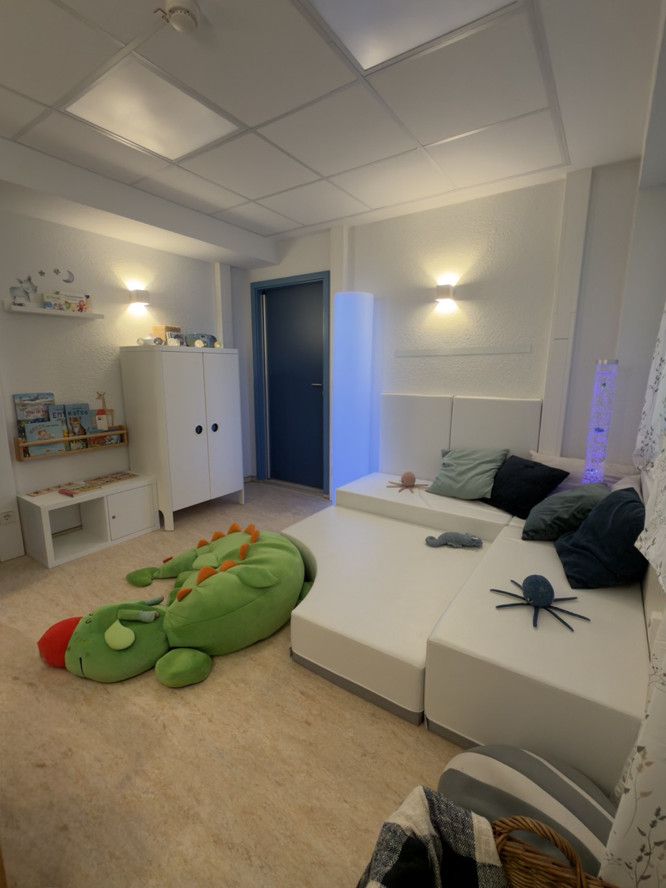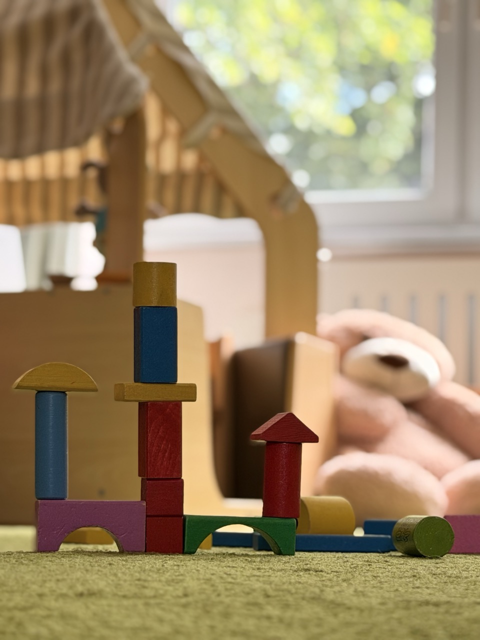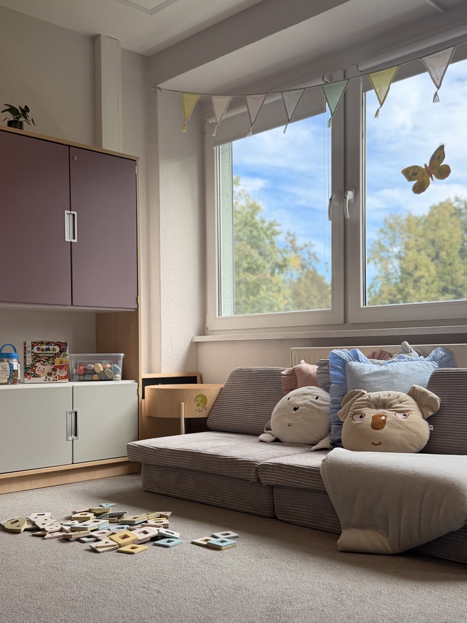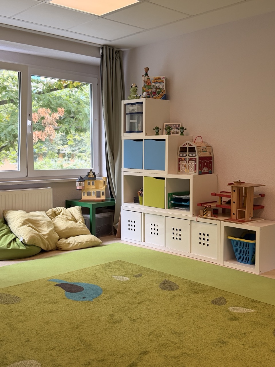 Die Einrichtung umfasst 14 helle, freundliche Gruppenräume, teils mit Verbindungstüren, die den Kindern vielfältige Möglichkeiten zum Spielen, Lernen und Entfalten bieten. Wir legen großen Wert auf pädagogisch durchdachte Raumgestaltung, die die Entwicklung der Kinder in allen Bereichen unterstützt. Jeder Gruppenraum verfügt über ein eigenes Bad und eine Garderobe.