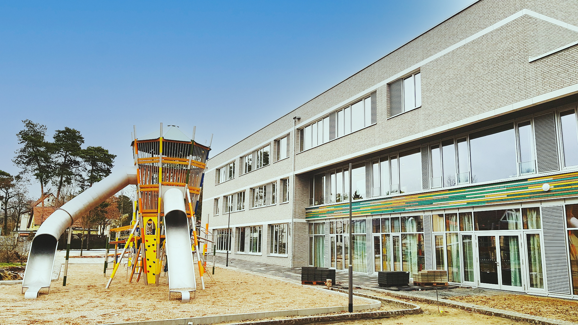 In Kooperation mit der Waldgrundschule können wir u.a. die Mensa, die Lehrküche und den Technikraum nutzen. Des Weiteren besteht eine Kooperation mit der Kinderbibliothek der Stadt Hohen Neuendorf, welche die Kinder frei nutzen dürfen. Auf dem großen Außengelände können unsere Kinder sich bei jedem Wetter ausgiebig bewegen. Dazu steht ihnen der Schulhof, das Wäldchen und ein großer Spiel- und Bolzplatz zur Verfügung.