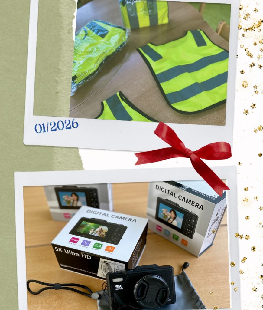 Dank der Unterstützung unseres Fördervereins konnten im Januar 2026 Fotoapparate und Warnwesten für die Kita angeschafft werden – ein wertvoller Beitrag für mehr Sicherheit auf unseren Ausflügen und lebendige Einblicke in unseren Kita-Alltag.
