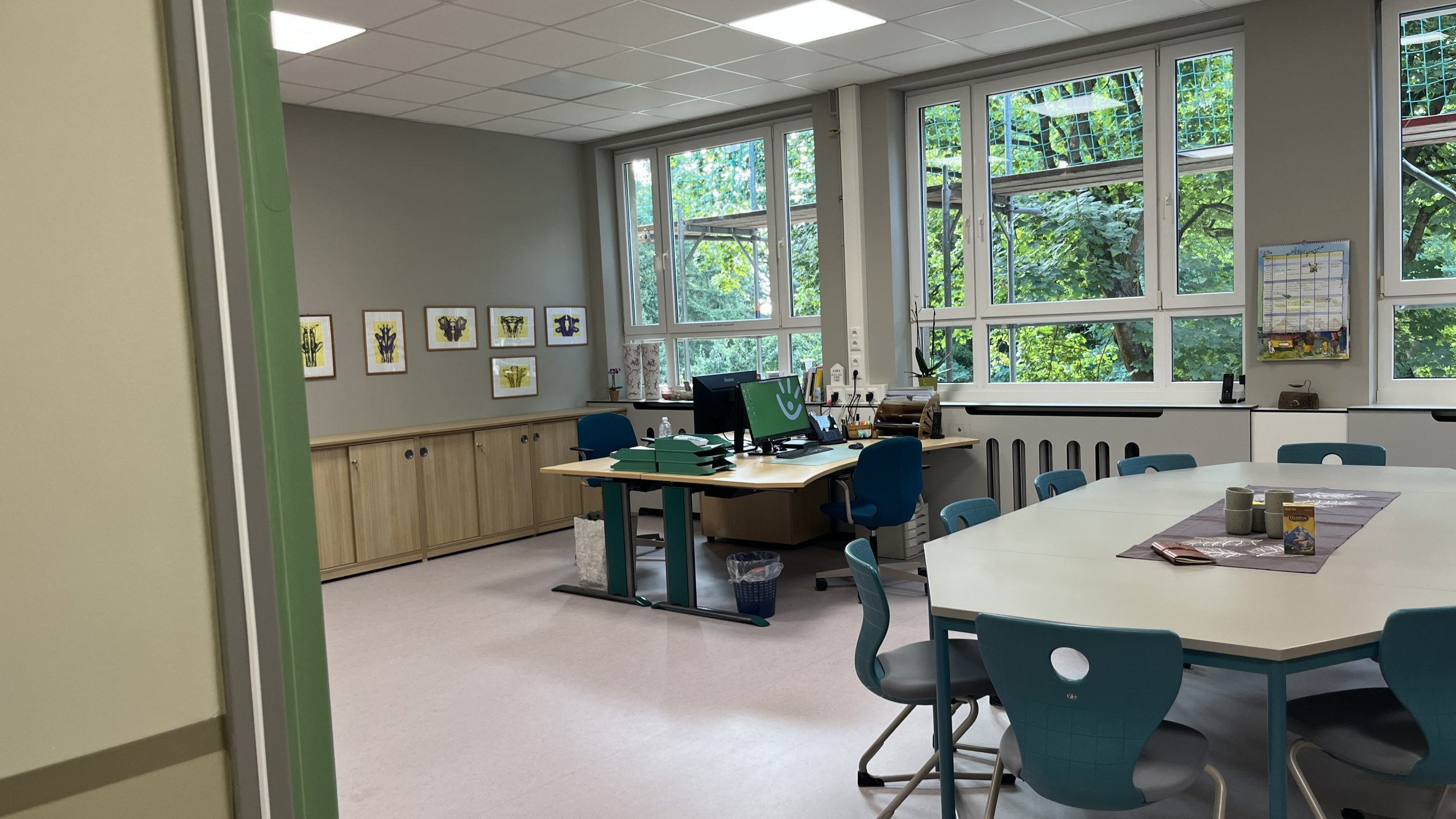 3 engagierte Lehrerinnen, 1 Schulsozialarbeiterin, 2 Schulkrankenschwestern, 1 Küchenkraft, 1 Servicemitarbeiterin, 1 Reinigungskraft, 2 Haustechniker und 1 studentische Hilfskraft.