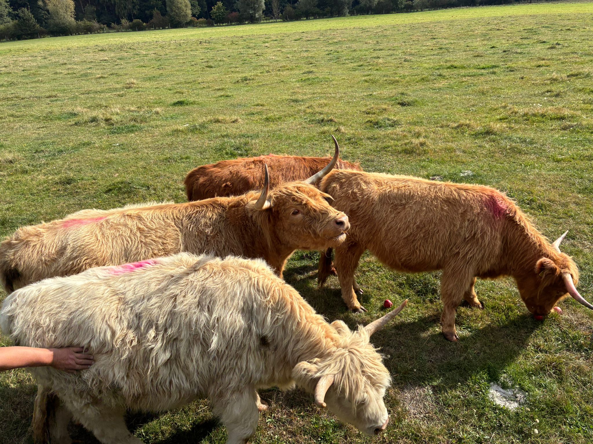 Am 2. Oktober 2025 durften wir mit Bauer Horst eine zweistündige Kremserfahrt unternehmen – als Dankeschön für unsere fleißig gesammelten Kastanien! Unterwegs besuchten wir seine Weiden, fütterten Damwild und schottische Highland-Rinder und erlebten dabei einen wunderschönen Vormittag in der Natur.