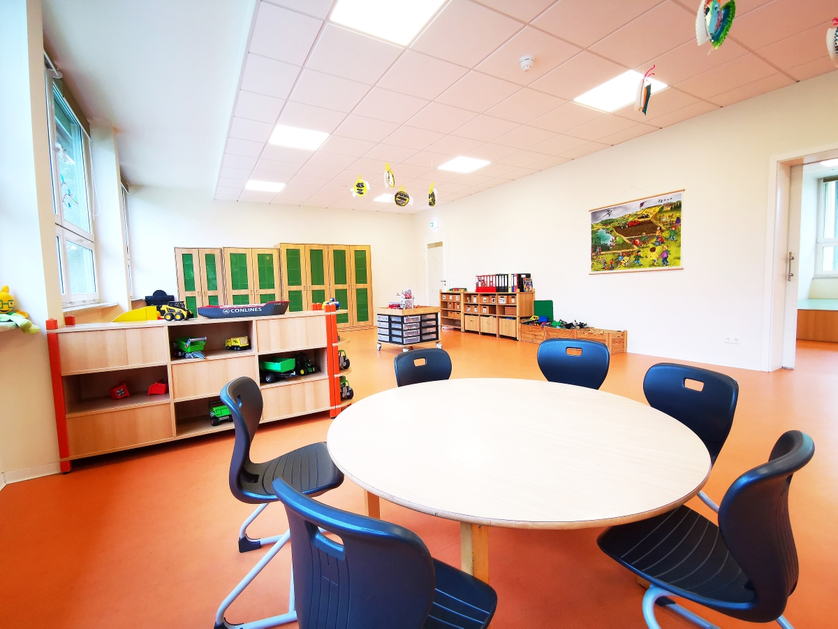 Die Unterrichtsräume und Flure sind so gestaltet, dass sich die Kinder in ihrer Schule wie zu Hause fühlen. Bücher, Spiele, Materialien, Werkzeuge und Instrumente sind übersichtlich und leicht zugänglich untergebracht. Die Schülertische lassen sich problemlos zu Partner-, Gruppen- oder Einzelarbeitsplätzen umstellen, je nach Bedarf und Wunsch.
